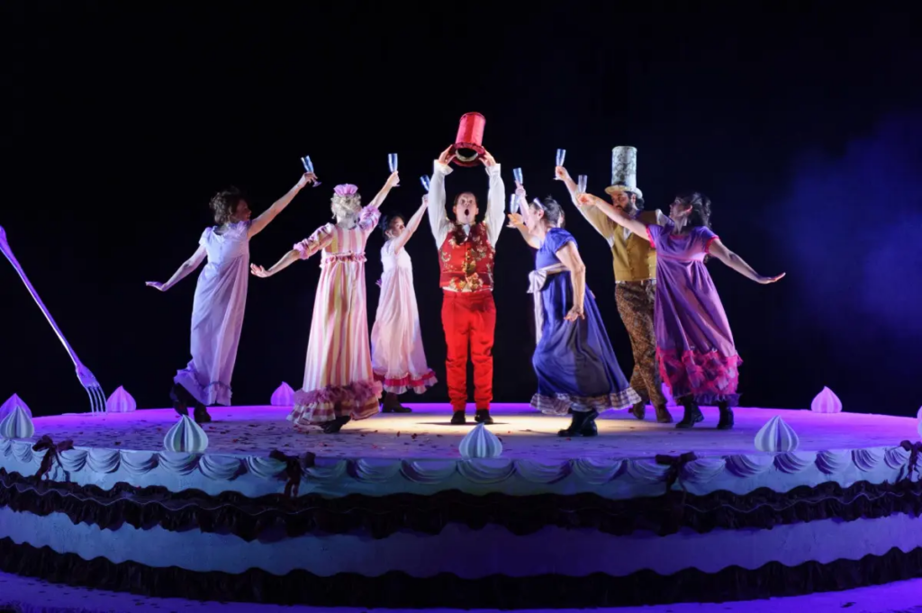 You know it’s going to be an interesting show when you find yourself sitting and wondering, “Are those actors standing on.. a giant cake?”